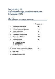 Dagordning standardiseringsutskottet den 29 augusti 2017